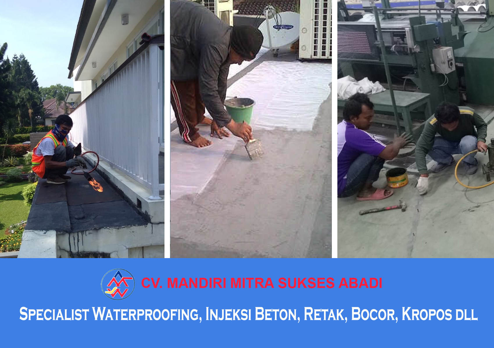 CV. MANDIRI MITRA SUKSES ABADI adalah perusahan yang bergerak dalam bidang specialist Contractor dan Waterproofing Yang sudah sangat berpengalaman dibidang aplikator waterproofing dan Injeksi Beton.